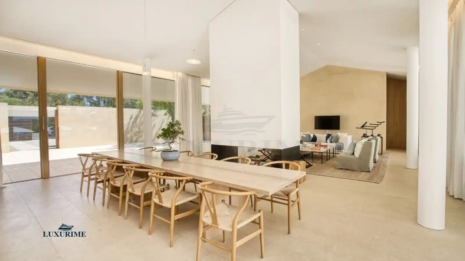 Experience the epitome of elegance and comfort at Villa Kalina, an exquisite modern villa designed to accommodate up to 16 guests across 8 lavish bedrooms. Nestled within a secured 13,500 m² domain, this stunning property boasts breathtaking sea views and overlooks serene vineyards, offering a perfect blend of tranquility and sophistication. With 980 m² of living space, Villa Kalina is an idyllic escape for those seeking privacy, luxury, and world-class amenities.