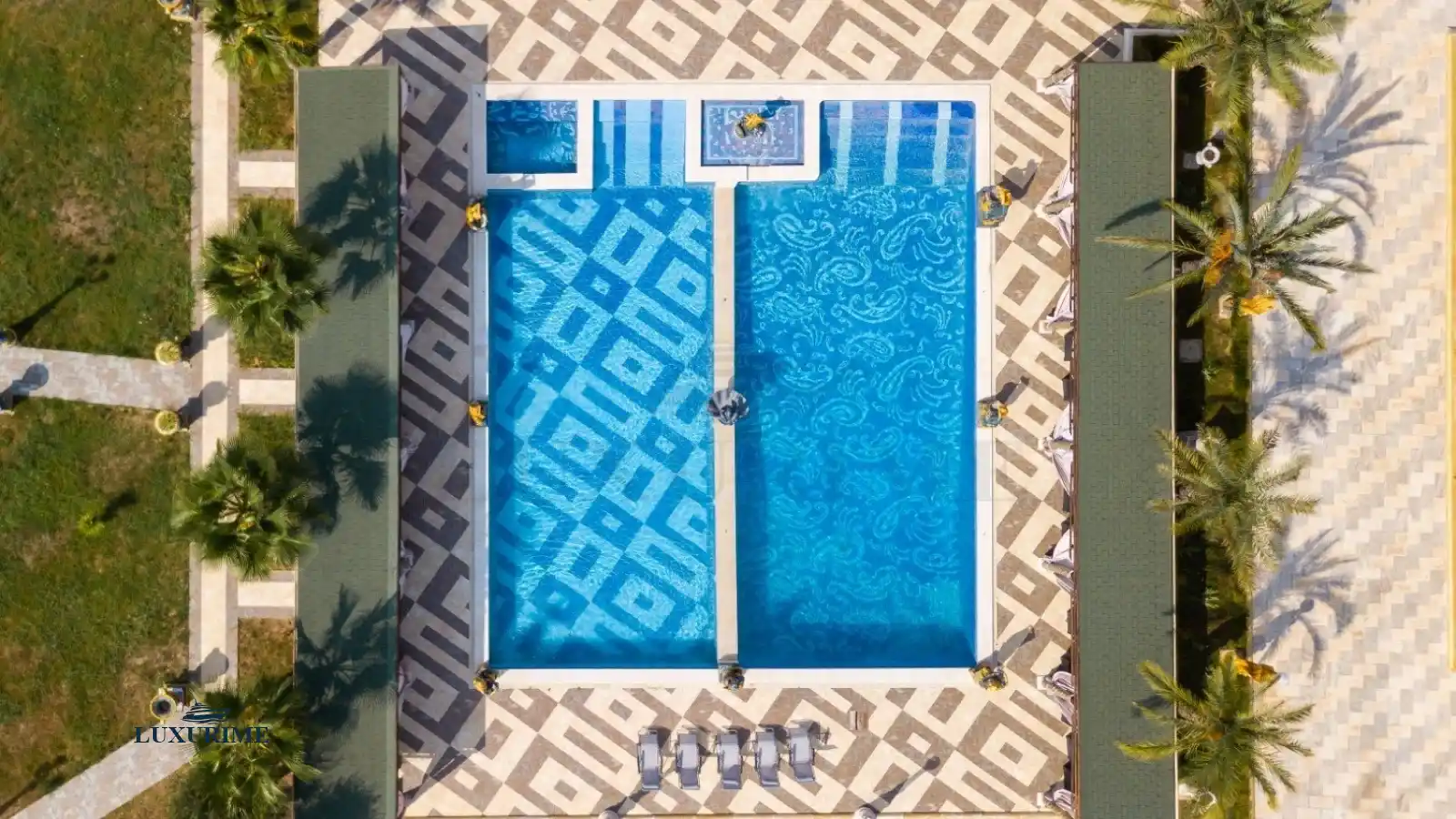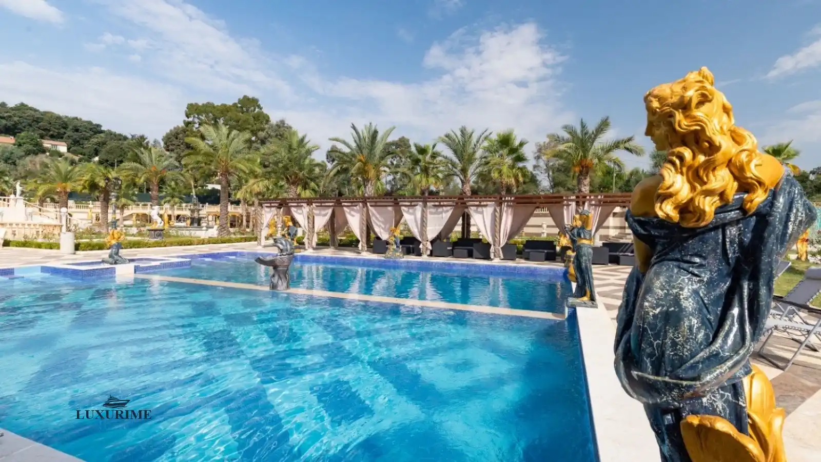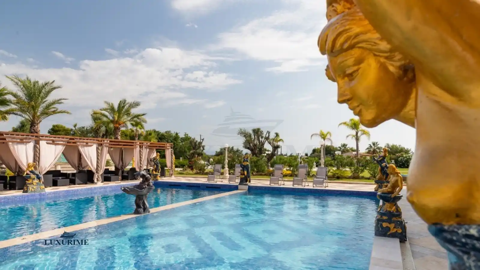 Land area: 39,000 m² of landscaped gardens, olive trees, and Mediterranean flora