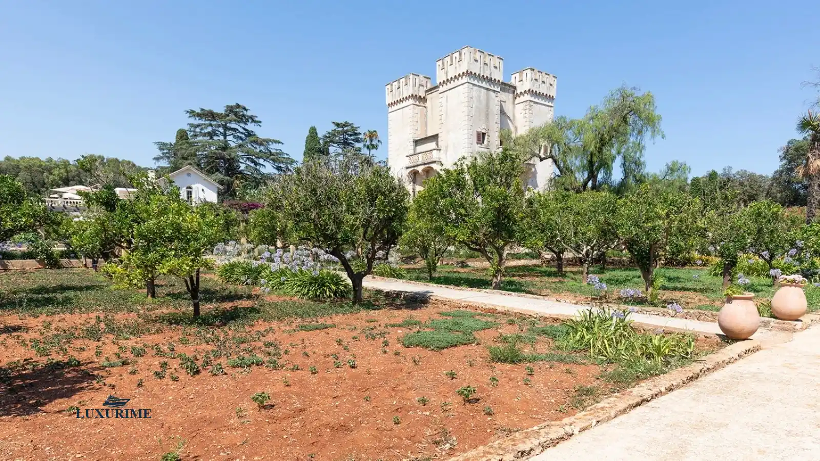 Outside, fragrant citrus groves, tranquil fountains, and cobbled pathways invite leisurely strolls under the Mediterranean sun. The estate’s heated swimming pool, sauna, hammam, and massage rooms offer the ultimate in relaxation, while a fully equipped gym ensures vitality during your stay.