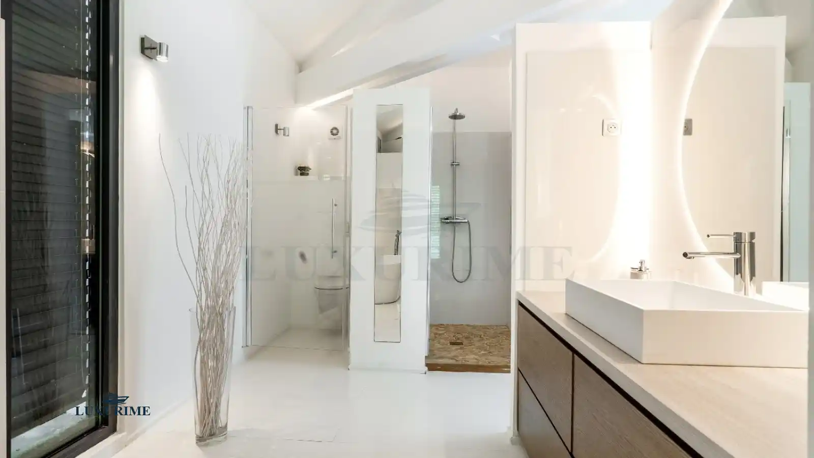 For those who prioritise well-being, Villa Bel Horizon boasts a modern, fully equipped gym and a soothing sauna, ready to accommodate every fitness and relaxation need. Meanwhile, the heated swimming pool, framed by wide terraces and comfortable loungers, promises leisurely afternoons punctuated by swims, laughter, and family moments.