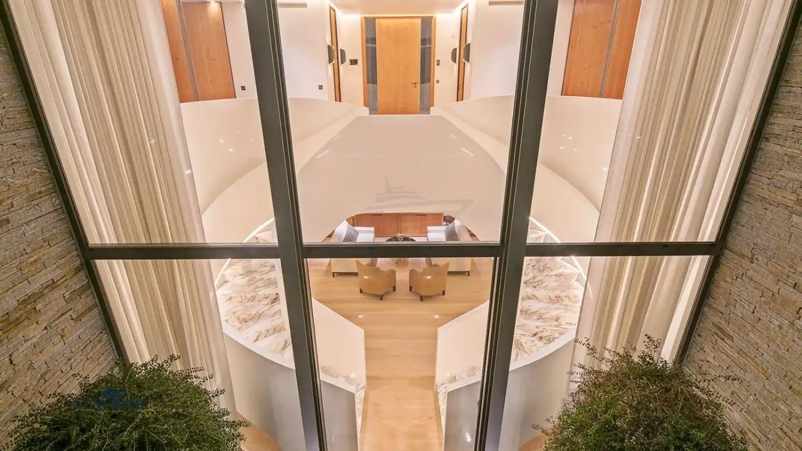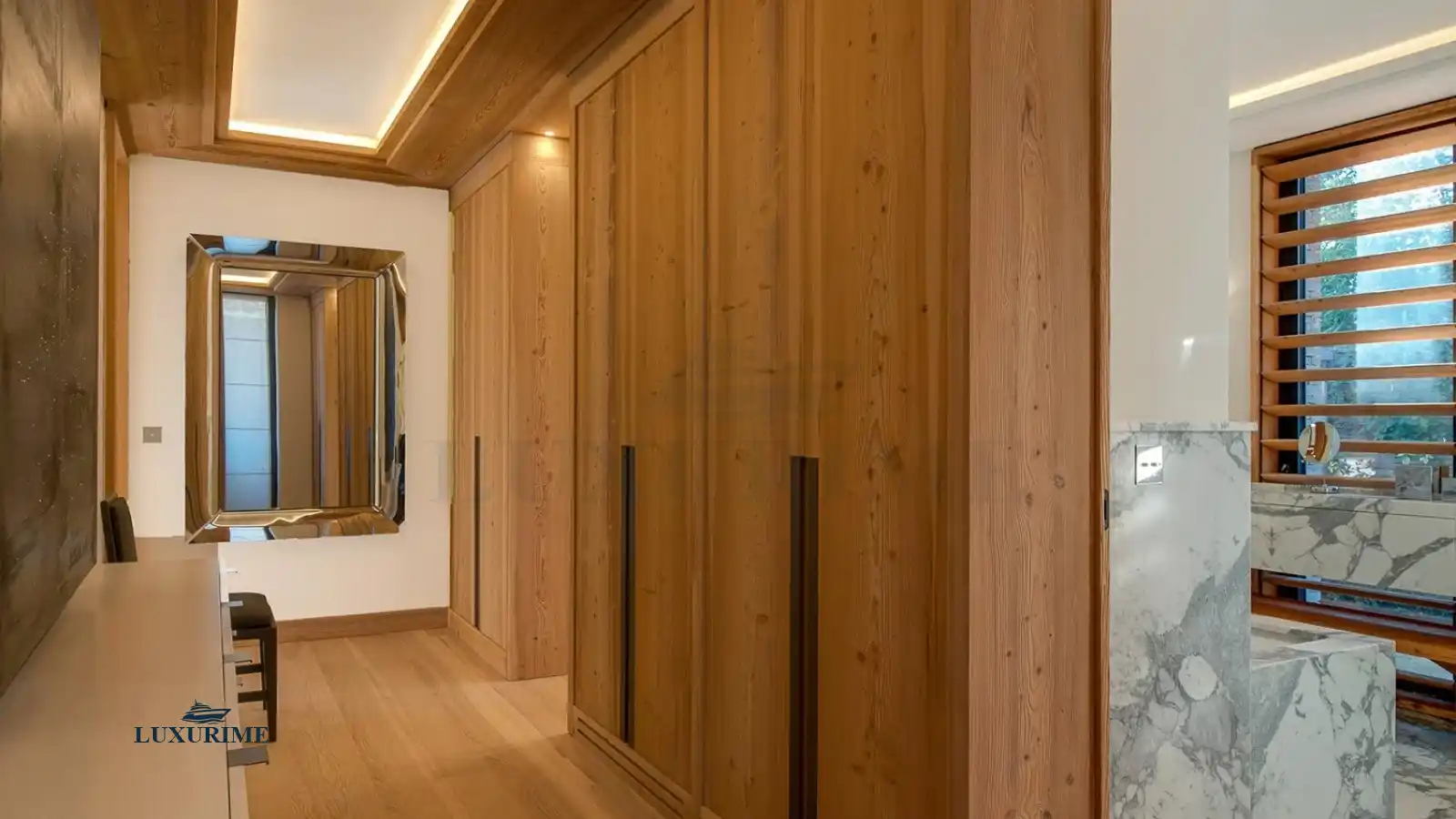 Every detail of Villa Bellazard reflects modern refinement. Its double staircase creates an architectural focal point, while the interplay of natural wood and sleek marble infuses warmth into the villa’s interiors. A lounge-library provides a refined corner for relaxation, while wide-open spaces and seamless indoor-outdoor flow invite guests to savor the Mediterranean lifestyle.