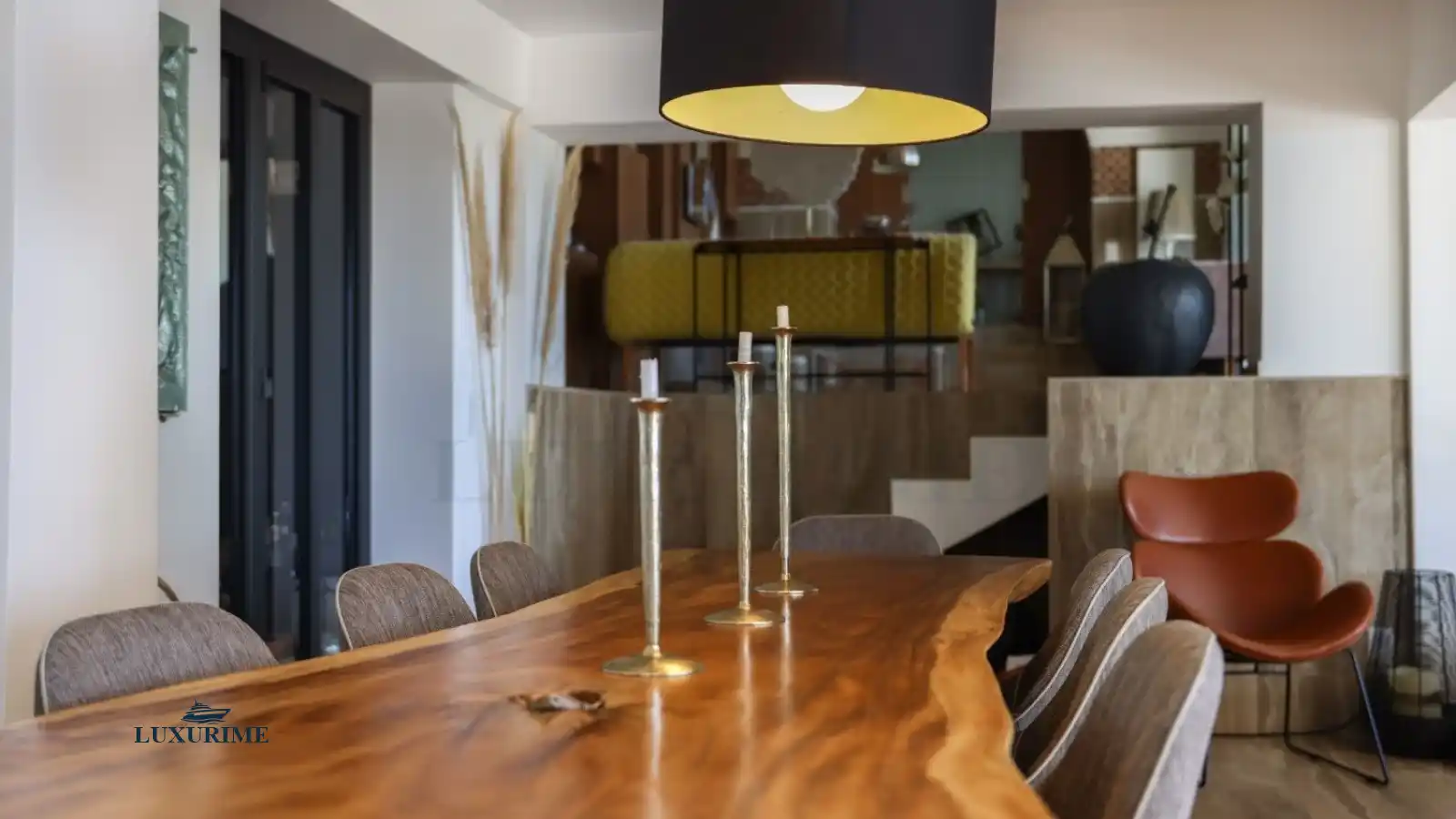 Villa Rosalinda’s interiors are bathed in natural light and elegantly decorated with refined touches of wood and leather. Every detail has been carefully designed to create a warm yet sophisticated atmosphere.