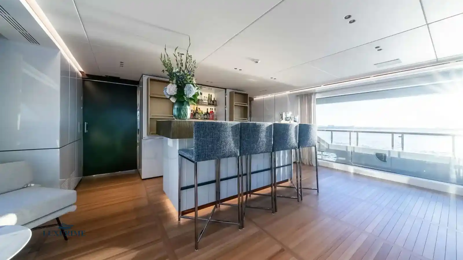 ALPHA WAVES is crewed by 9 highly trained professionals, including a private chef, deckhands, and a concierge team, ensuring every need is met with white-glove service.