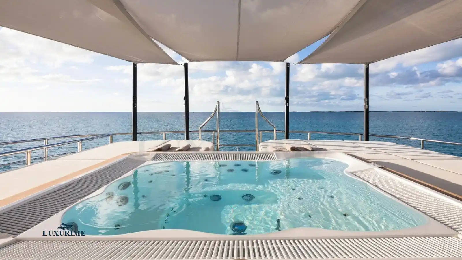 Sun Deck: A private oasis with a Jacuzzi, sunpads, bar, and al fresco dining.