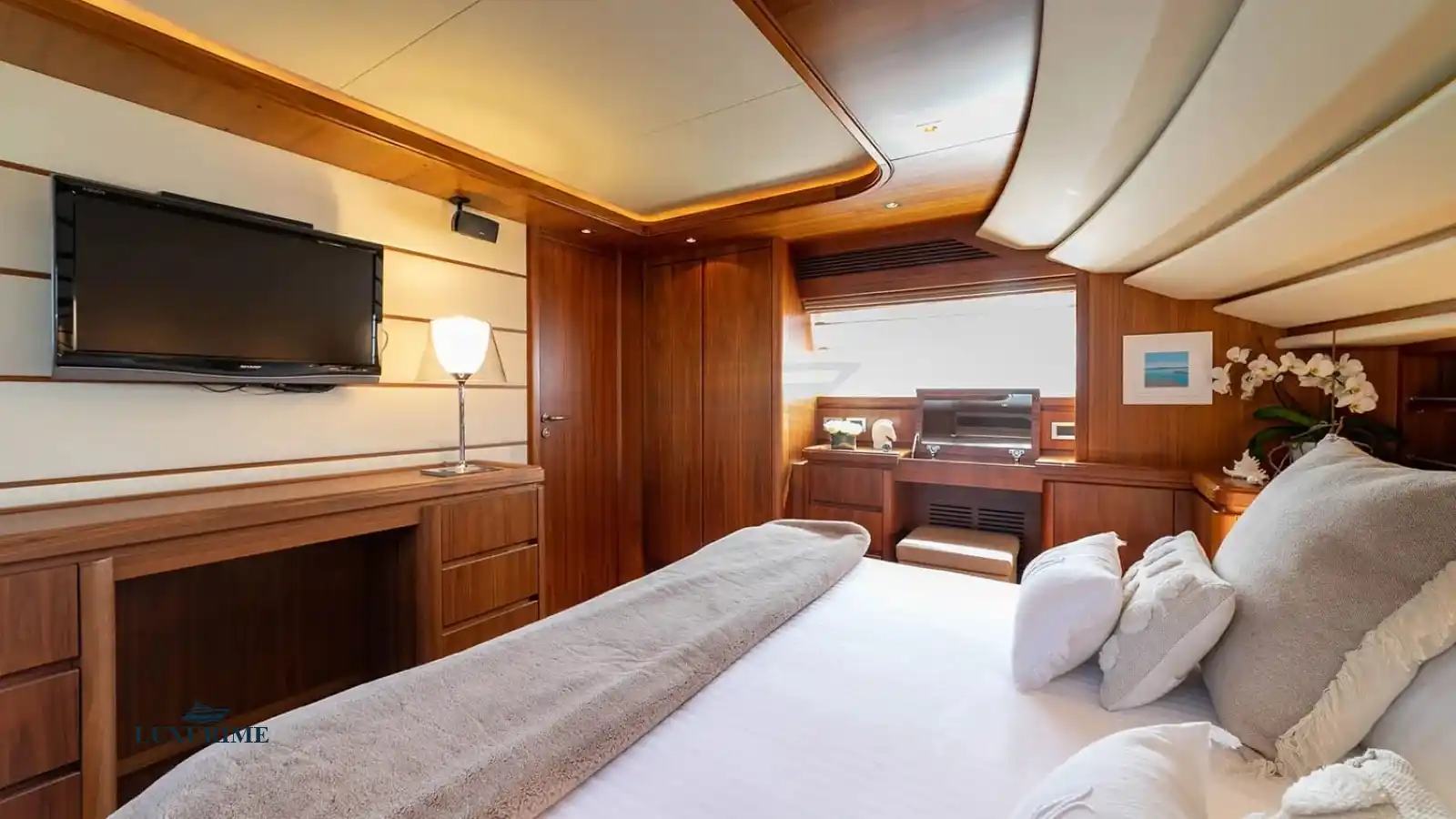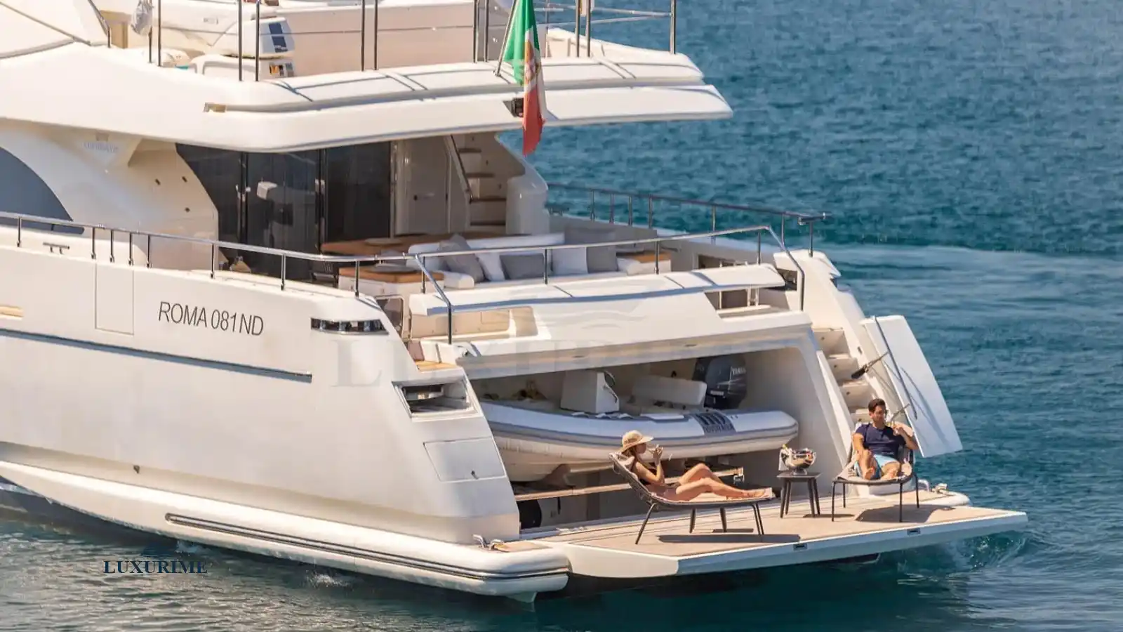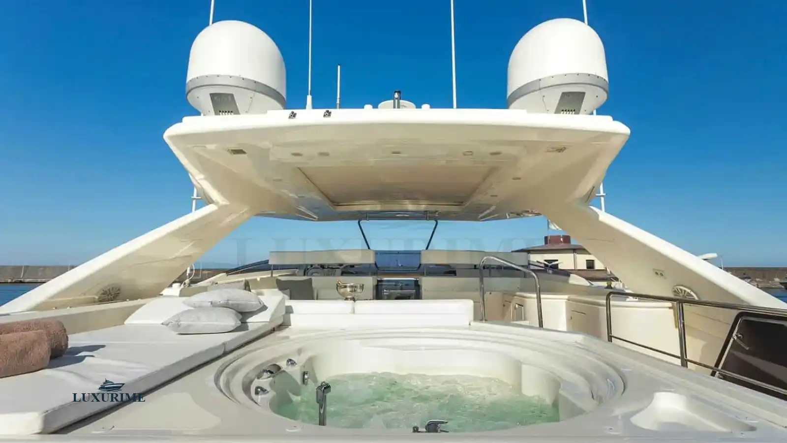 Sun worshippers can unwind on the flybridge sunpads or enjoy alfresco dining on the aft deck, surrounded by the sparkling Mediterranean.