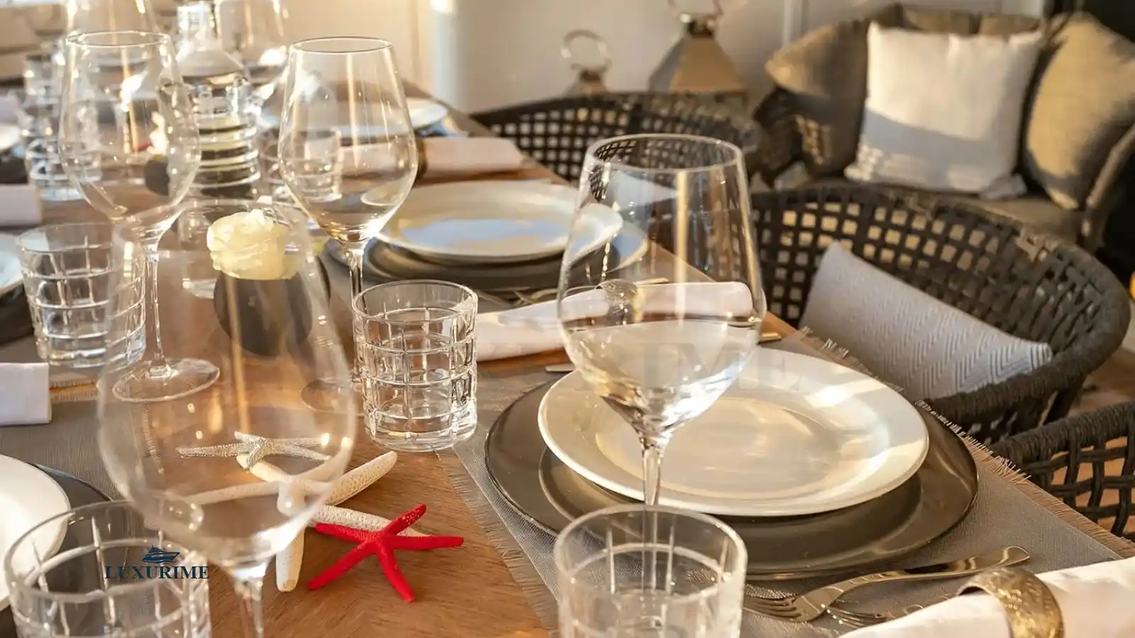 ETHNA offers five beautifully appointed cabins, including a lavish master suite with a dressing room, two double cabins, and two twin cabins, accommodating up to 12 guests in refined comfort. The spacious salon and dining area are bathed in natural light, creating an inviting atmosphere for relaxation and socializing. Sink into sumptuous leather sofas or gather around the elegant glass dining table for unforgettable moments with family and friends.