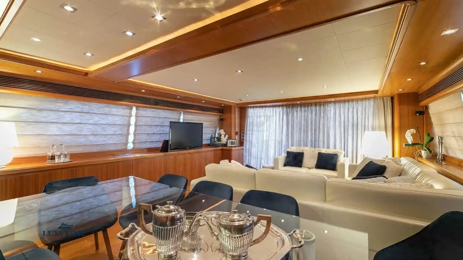 Powered by twin MTU 2400 HP engines, ETHNA cruises effortlessly at 18 knots (max speed 24 knots), ensuring swift and smooth journeys between glamorous destinations. With a 2018 refit, this yacht combines modern amenities with timeless sophistication.