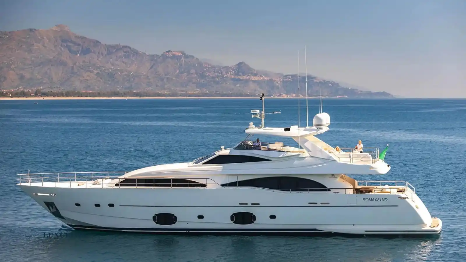 Experience the perfect fusion of elegance, performance, and comfort aboard ETHNA, a stunning 30-meter Ferretti 97 motor yacht, available for charter with Luxurime Yacht Charter on the French Riviera. Anchored in the prestigious port of Cannes, this meticulously maintained yacht features stabilizers for smooth sailing, ensuring maximum comfort as you explore the breathtaking coastline of the Côte d’Azur.