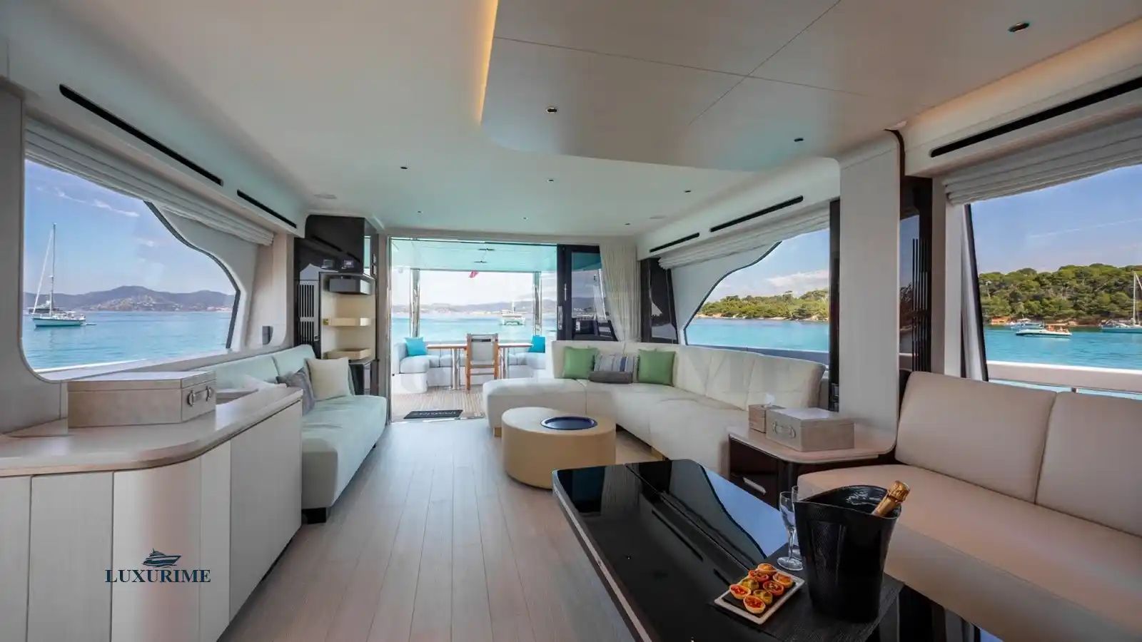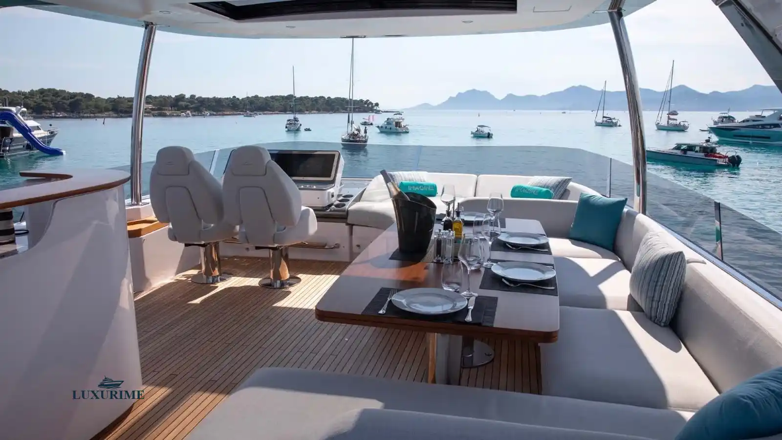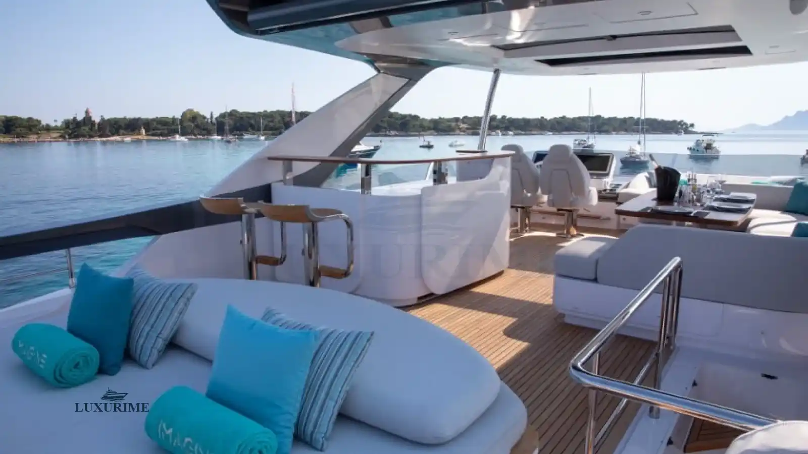 Experience the pinnacle of luxury and performance aboard IMAGINE, an exquisite Azimut 78 Fly yacht available for charter with Luxurime Yacht Charter. Designed for discerning travelers seeking elegance, comfort, and adventure, this 23.64-meter (78-foot) masterpiece combines cutting-edge design with exceptional amenities, ensuring an unforgettable voyage along the French Riviera and beyond.