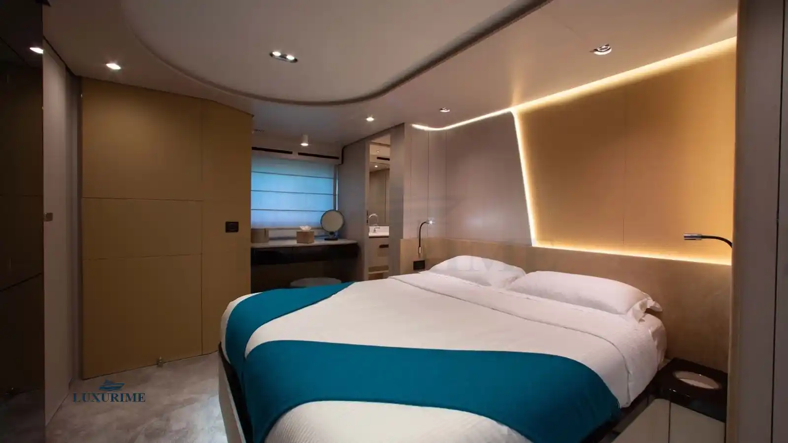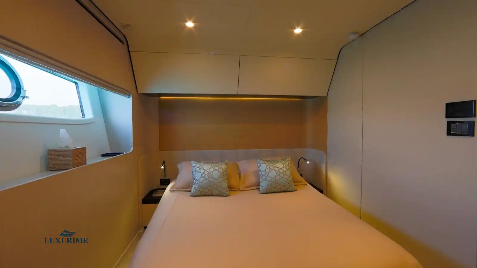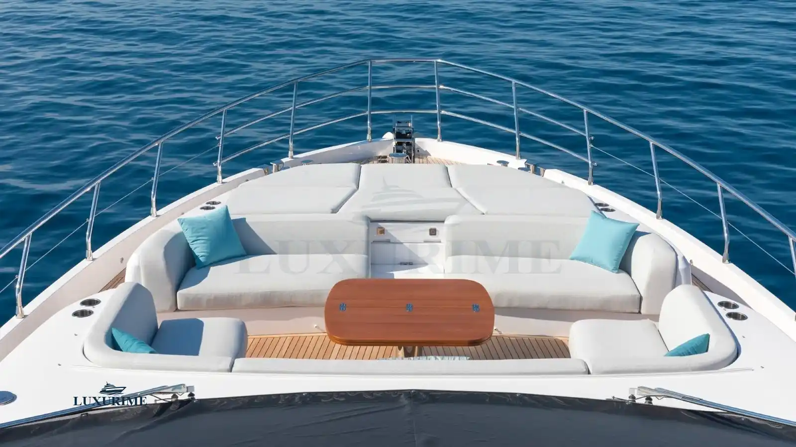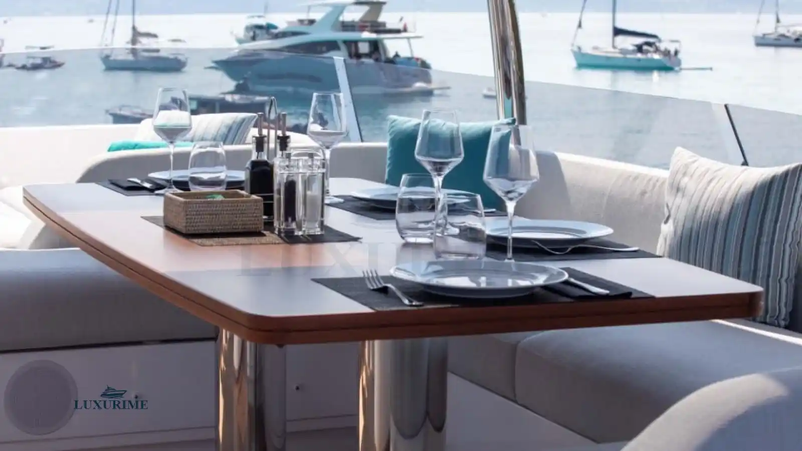 • Fly Bridge: A stunning open-air lounge area with seating, sun pads, and panoramic views—ideal for alfresco dining or sunset cocktails.