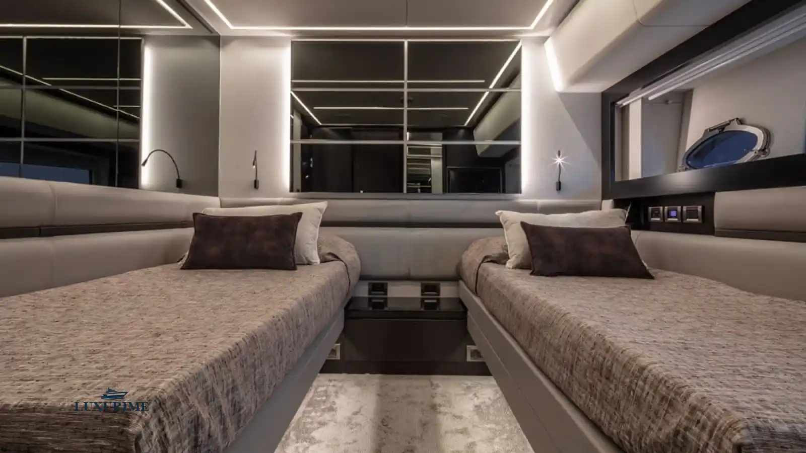 • Fly Bridge – Expansive sunbathing and lounging area with panoramic views