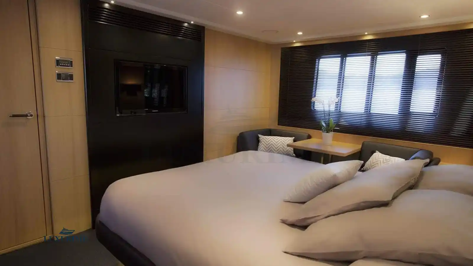 Designed for comfort and sophistication, OBSESSIO accommodates up to 12 passengers for daytime cruising and 8 guests overnight in four beautifully appointed cabins: