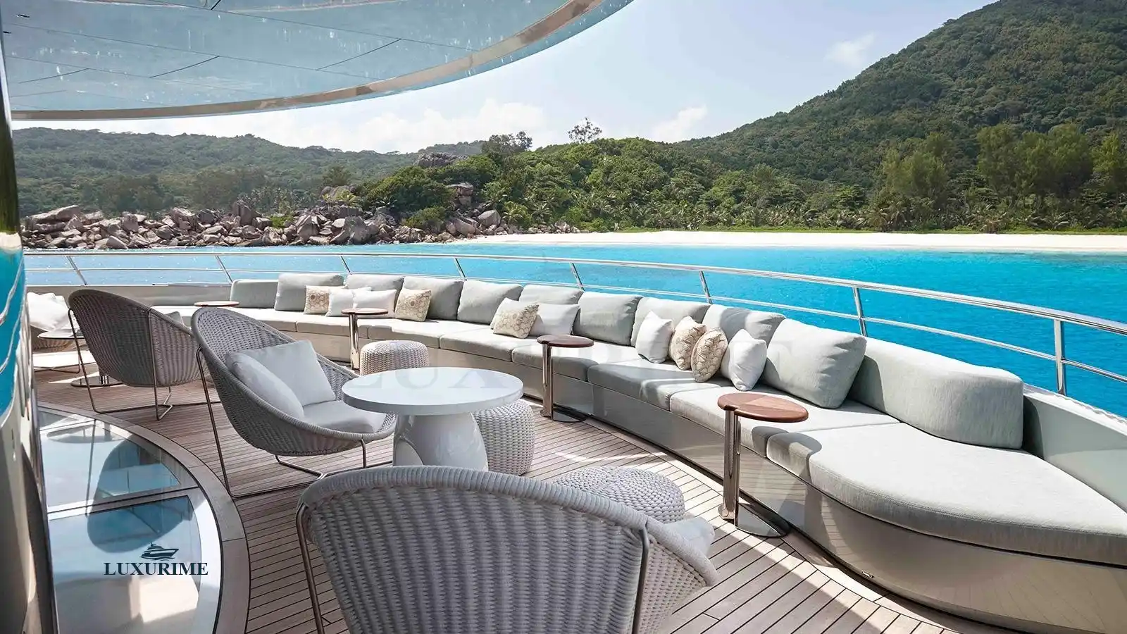 Spacious Sun Decks: Multiple relaxation areas with sunpads, Jacuzzi, and alfresco dining.