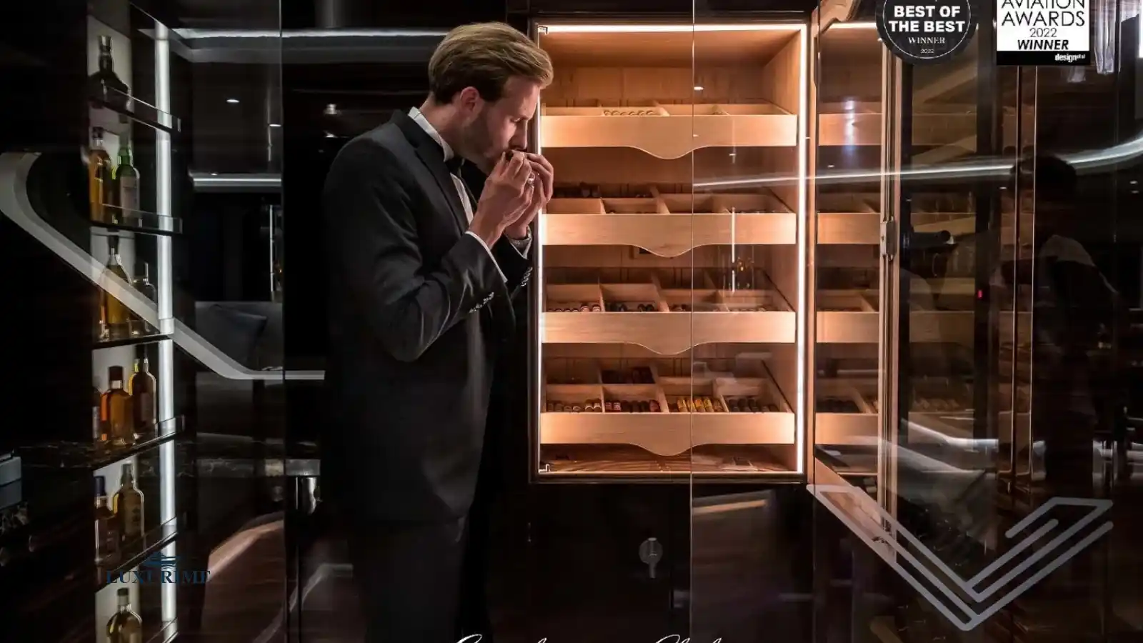All cabins feature state-of-the-art entertainment systems, climate control, and designer furnishings for maximum comfort.